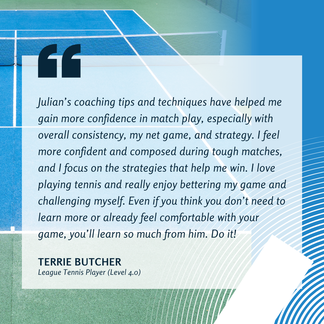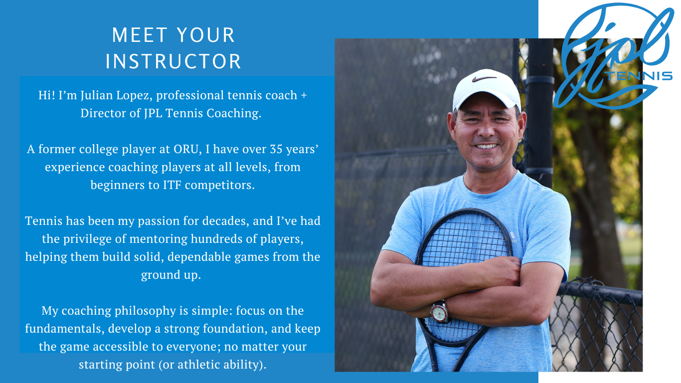 Hi! I’m Julian Lopez, professional tennis coach + Director of JPL Tennis Coaching.