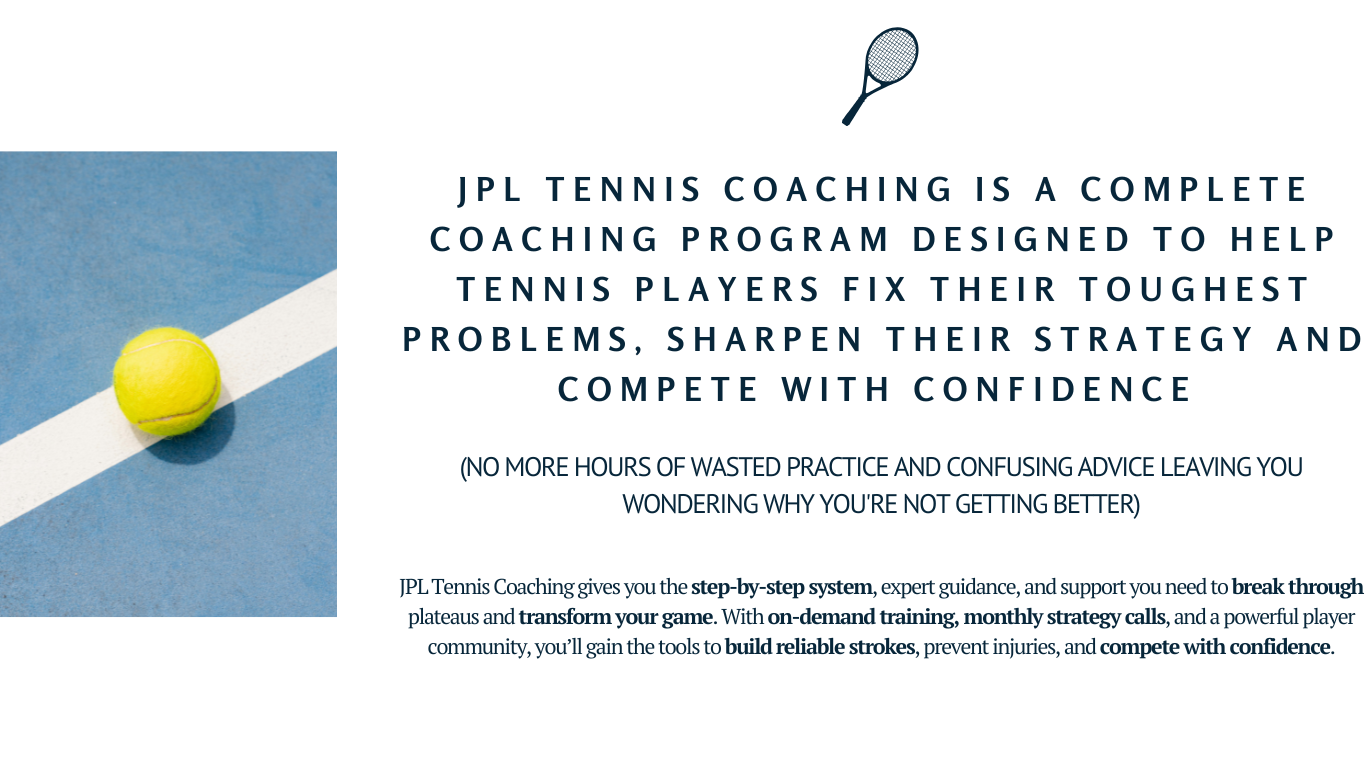 The JPL Tennis Coaching program is designed to help you train smarter, play better, and break through to your next level, without the guesswork.