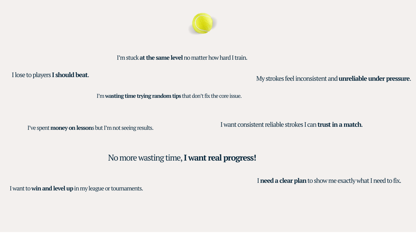 If you’re tired of losing to players you should beat, frustrated by inconsistent strokes, or feeling like you’ve hit your ceiling...this course is for you.