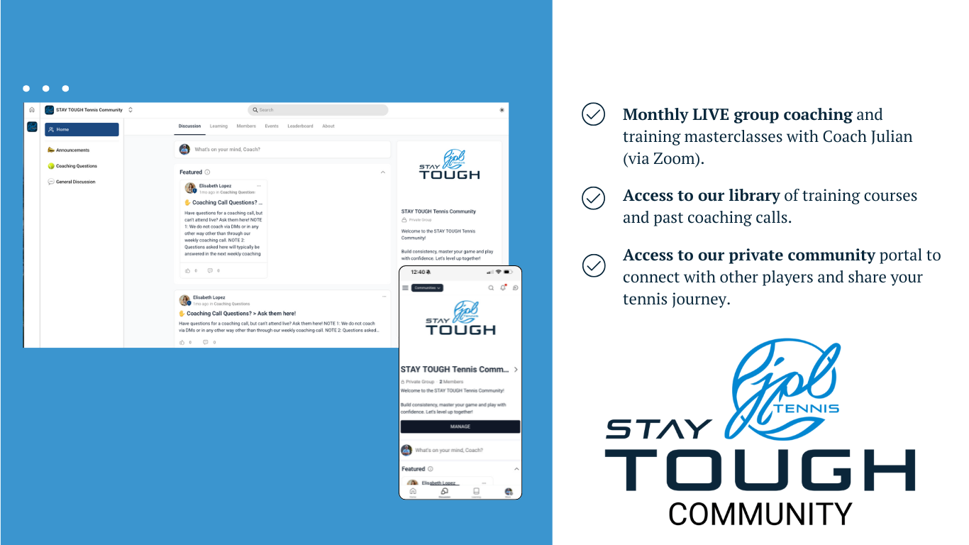 Access to our private community portal to connect with other players and share your tennis journey.