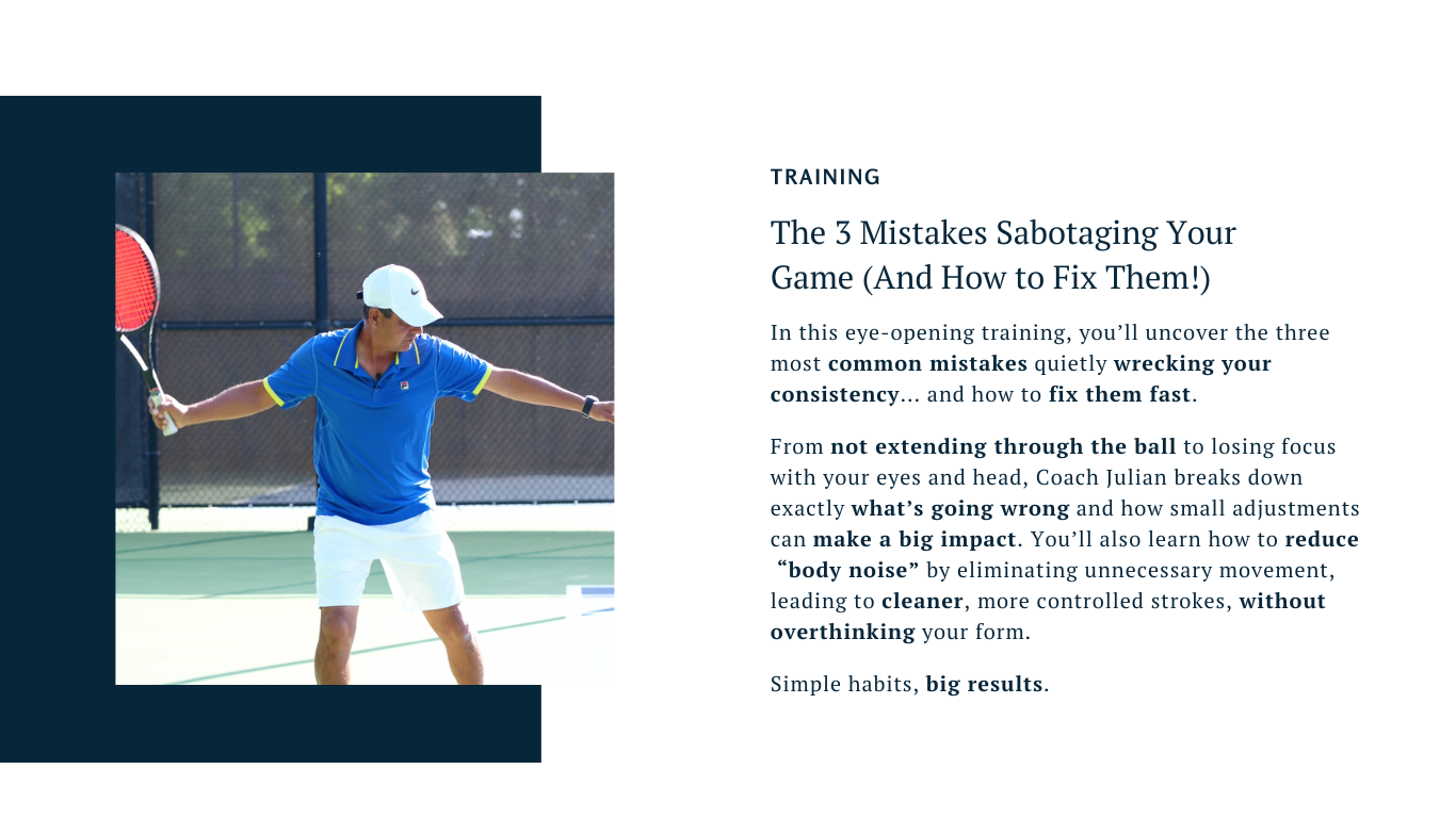 From not extending through the ball to losing focus with your eyes and head, Coach Julian breaks down exactly what’s going wrong and how small adjustments can make a big impact. You’ll also learn how to reduce “body noise” by eliminating unnecessary movement, leading to cleaner, more controlled strokes, without overthinking your form.