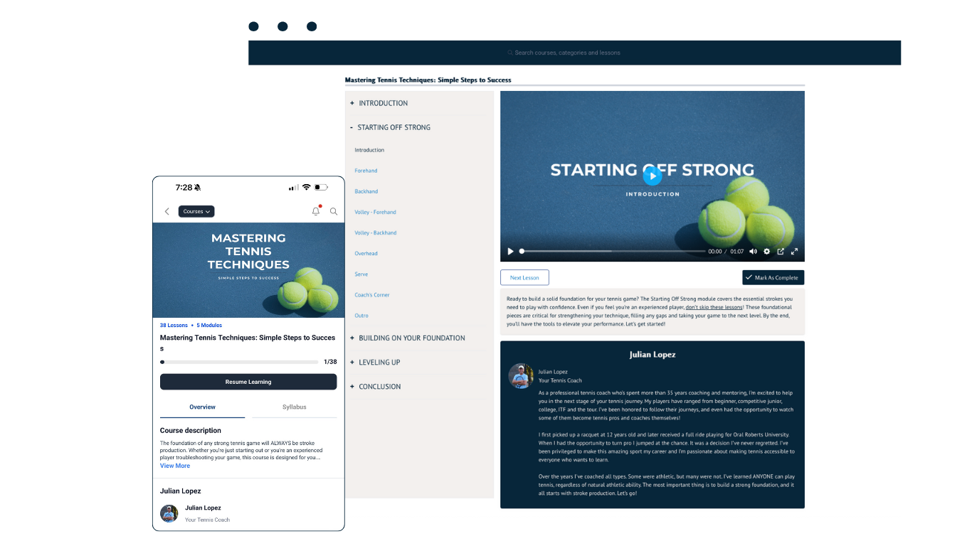 Most online tennis courses focus on just one shot, like a better forehand or a quicker serve. While helpful, they often skip over the deeper mechanics and foundations that make lasting improvement possible.